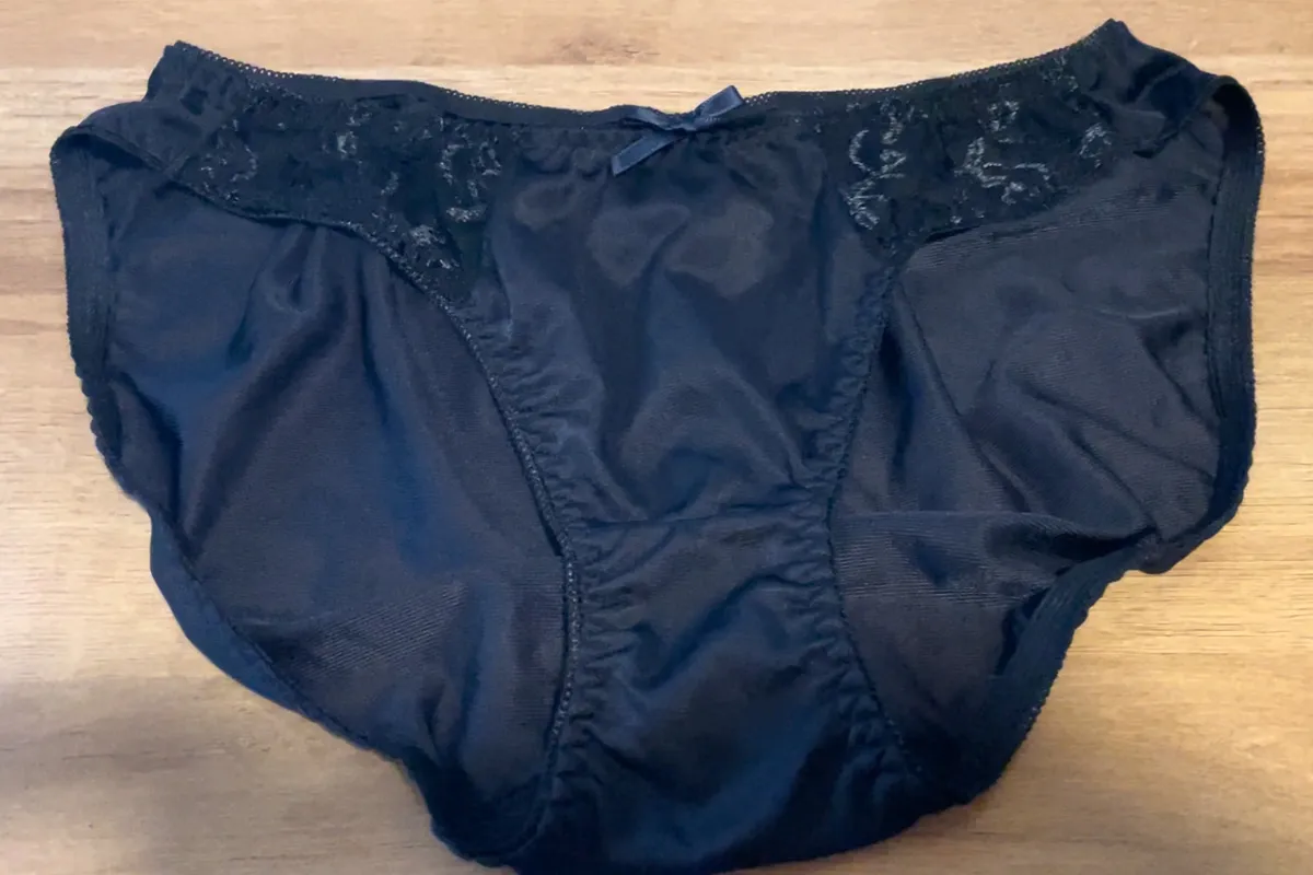 彼女が脱衣所に脱ぎ捨てていった、昨日履いていた黒のフルバックパンティ。朝からこいつで、じっくりパンティコキを楽しませてもらう。