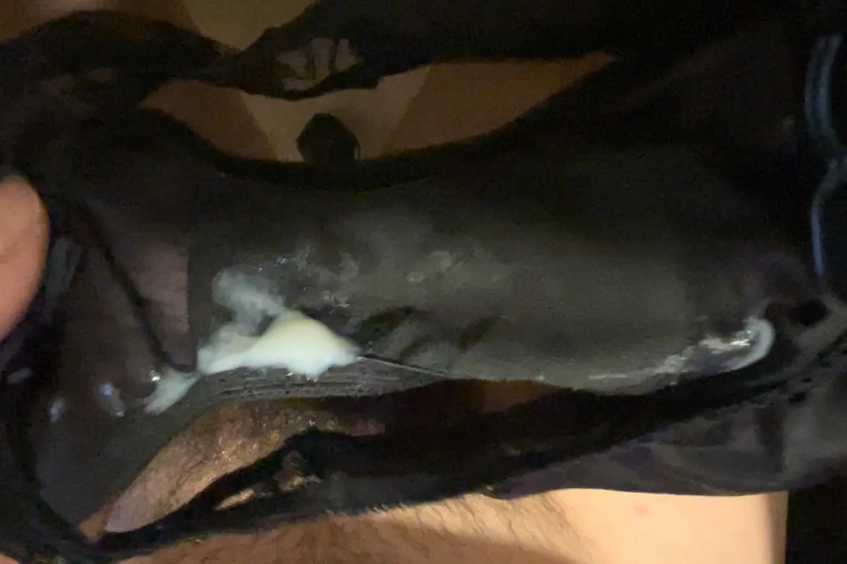 中を広げてみると、黒い生地に真っ白な俺の精子がはっきりと浮かび上がっている。このコントラストが、視覚的な征服感をさらに煽る。